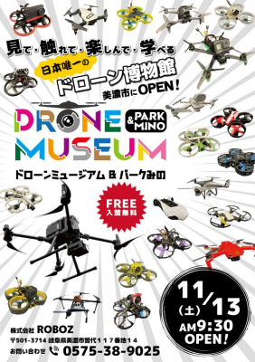 ドローンオペレーター養成スクールなどを手がける株式会社ROBOZ(本社:岐阜県恵那市、代表取締役:石田宏樹)は、合計100台以上のドローンを展示し、見てさわって楽しんで学べるドローンの博物館『ドローンミュージアム&パークみの』を岐阜県美濃市に2021年11月13日にオープンします。