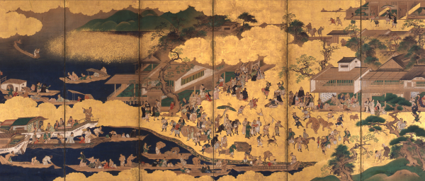 《南蛮人遊楽図屏風》江戸時代初期 太平洋セメント株式会社蔵(津久見市寄託)