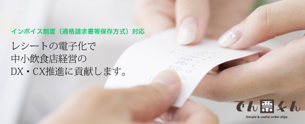 中小飲食店向けにPoint of Salesレジ機能(以下、POS)、オーダーエントリー機能(以下、OES)、モバイルテーブルオーダー機能(以下、ゲッ注)などSaaS型でシステム提供するでん票くん共同事業体(アロハス株式会社と株式会社グローカリズムの2社ジョイントベンチャー。以下、でん票くん)は、2023年10月1日より運用がはじまるインボイス制度(適格請求書等保存方式)に対応するシステム改定第一弾を2021年11月中に実施します。これにより中小飲食店においても適格請求書発行事業者に申請登録することで、インボイス制度に対応した請求書等の発行が可能となり、企業など買い手側の税額控除に応えることが出来ます。
