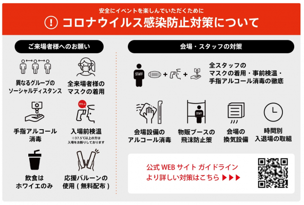 令和3年10月31日から開始する東京都の基本的対策徹底期間におけるイベントの開催制限等の基準に基づき開催いたしますが、ご来場いただけます皆様の新型コロナウイルス拡散防止対策へのご協力が不可欠です。