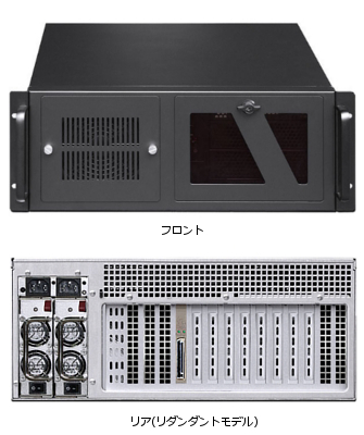 搭載ボードの電力需要に応じて1600W電源までアップグレードで、システム中央の12cmファン2台に加え、システム前面に2台の12cm吸気ファンが増設できます。