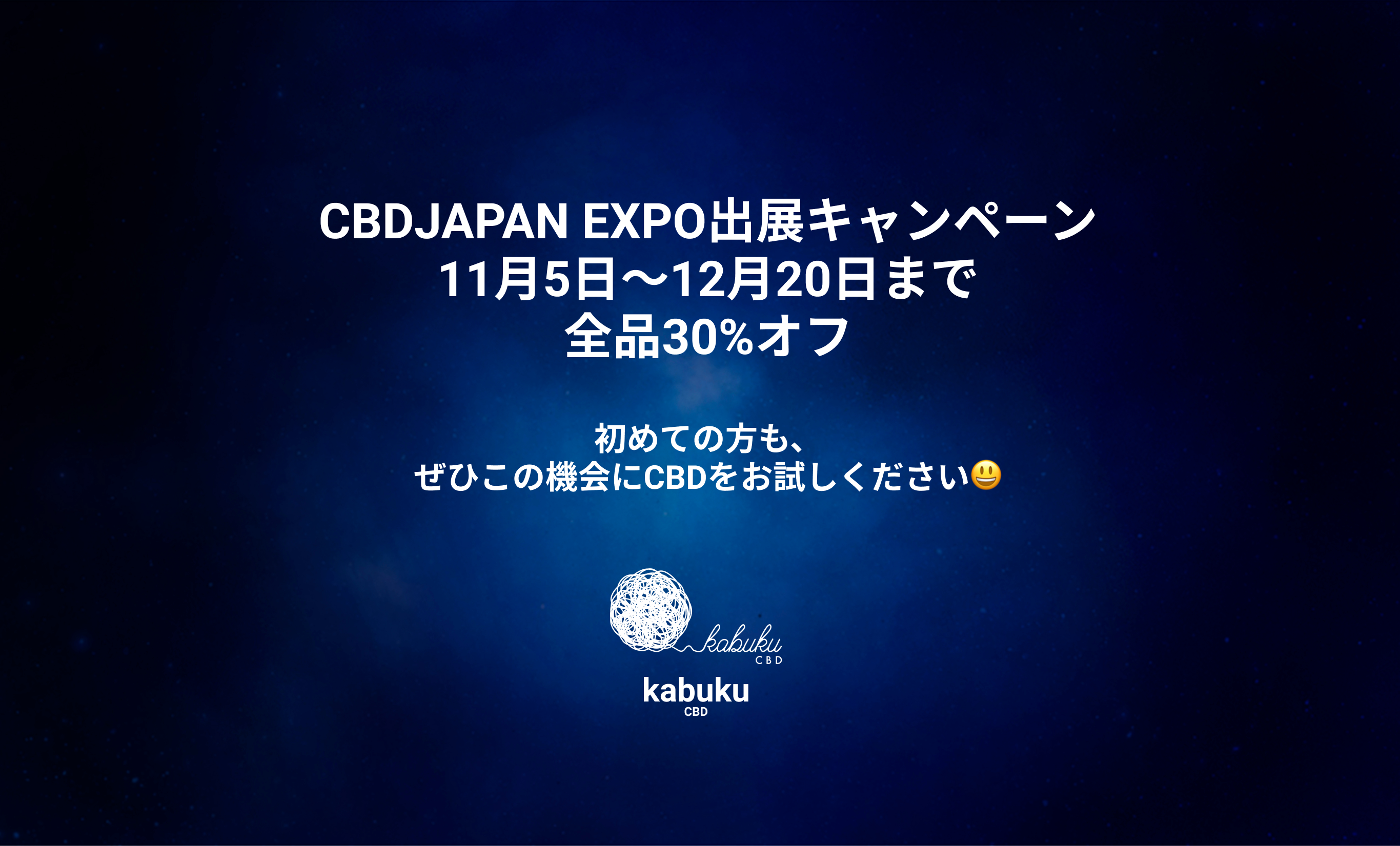 夜の時間帯に合うCBD製品開発とオリジナルブランドCBDkabuku(https://kabuku.store)をECサイトで展開する、12sensory合同会社(東京都目黒区、代表社員:吉田理穂)は、11月5日(金)・6日(土)に開催されるCBD(カンナビジオール)とCBD製品に関するビジネスイベント、CBD JAPAN EXPO 2021 Autumnに初出展。それに伴い、期間限定でCBDkabuku全品30%オフのキャンペーンを開始します。
