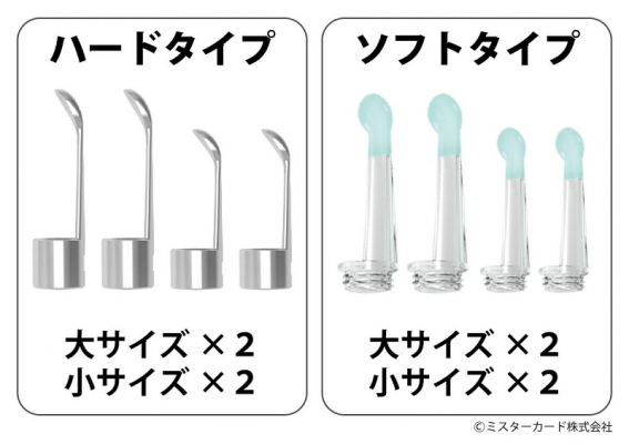 ○4種類のイヤースプーン(ハードとソフトの2タイプ、大人用と子供用の2サイズ)