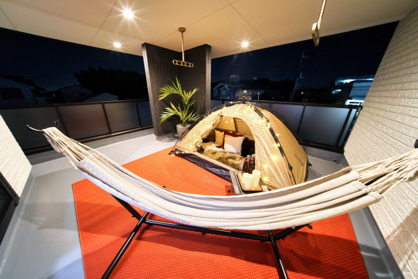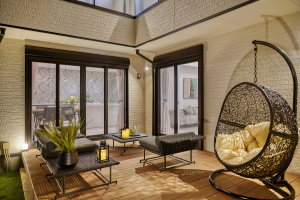 2Fの主寝室に面したインナーバルコニーとなっており、天候を気にすることなく就寝前の晩酌や読書などにも最適です。