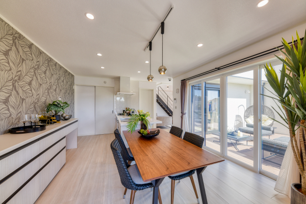 キッチンスペースと隣接しており、気分によっては外でご飯を食べたり、