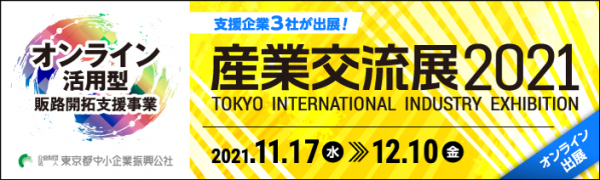 本事業の支援企業3社が「産業交流展 2021」にオンライン出展いたします。皆様のご来場お待ちしております。