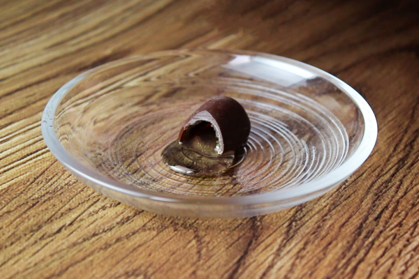 こちらの商品コンセプトは「舌の上で感じるAMAHAGANとチョコレートの完璧なマリアージュ」。特に、中に閉じ込めたウイスキーの量はビターチョコと最適な割合になるよう、何度も試行錯誤を繰り返しました。お口の中でチョコを割った際に流れ出るウイスキーの風味とその舌触りを皆さまに愉しんでいただきたいという思いから、非常にクリスプな食感に仕上げました。その後、口の中でチョコとウイスキーのマリアージュが完成していきます。