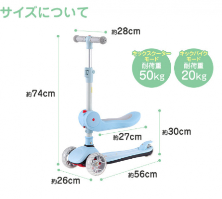 キックスクーターモード:8歳以上(耐荷重50kg)