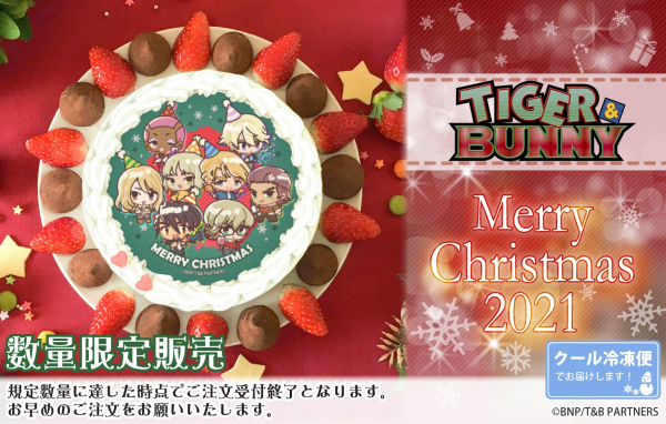 「プリロール」を運営する株式会社栄通(本社:東京都八王子市)は、『TIGER & BUNNY』のクリスマス限定デザインのプリントケーキを2021年11月12日(金)より予約受付開始いたしました。