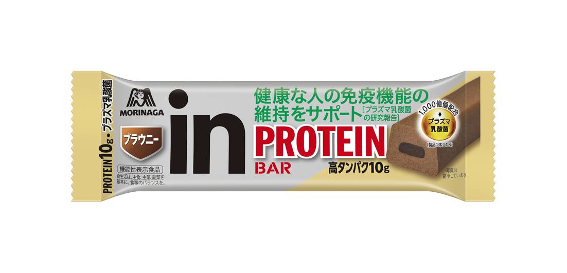 既に発表しております「inのど飴<りんご味>」「免疫ケア プラズマ乳酸菌チョコレート」「免疫ケア プラズマ乳酸菌ココア」の3品に、タンパク質とプラズマ乳酸菌の同時摂取が可能な「inバープロテイン ブラウニー」「おいしい大豆プロテインプラズマ乳酸菌入り」の2品を加えた計5品を新発売いたします。