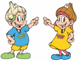 そこで、今回の出前授業では、当社のオリジナルキャラクターでにんにく帽子がトレードマークの「リッキー」と、たまねぎ帽子がトレードマークの「ルイ」の等身大の着ぐるみも授業に参加し、授業を楽しく盛り上げます。
