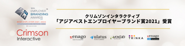 翻訳・校正をはじめ世界で言語ソリューションを提供するクリムゾンインタラクティブ(Crimson Interactive Pvt. Ltd. インド ムンバイ、代表:シャラド・ミッタル (Sharad Mittal))が、2021年11月29日、従業員のキャリア形成と成長を支援する各種のプログラムを評価され、 Employer Branding Instituteの「アジアベストエンプロイヤーブランド賞2021(Asia's Best Employer Brand Award 2021)」を受賞しました。
