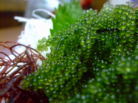 ・「久米島は、海ブドウ栽培の北限に当たる。塩蔵ものもあるが、生が一番。淡白でプチプチしたピュアな味わいは、泡盛とよく合う。」金廣利三(6次産業化プランナー)