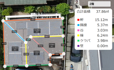 ドローン導入により、屋根の形状や高さ(3階建てなど)を気にせず、俯瞰した高解像度の撮影画像から部位ごとのサイズ・面積が画像上に自動的に表示されるため、不具合箇所の早期発見と精度の高い見積が素早く・簡単に作成でき、オーナー様への修繕内容の提案までの時間が格段に早まります。