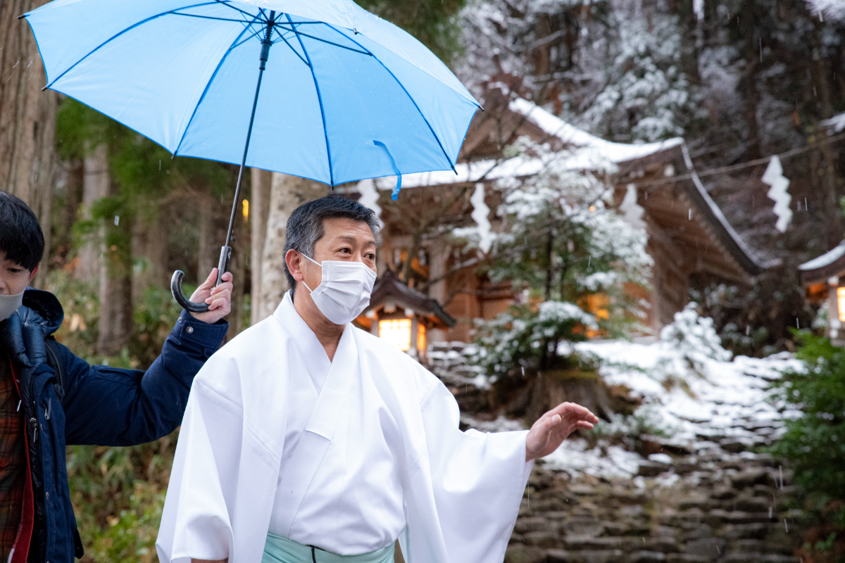 なまはげとの縁が深い「真山神社」参拝時には、神職高森氏から真山神社となまはげのつながりについて解説いただきました。参拝の記念に御朱印やお守り、第二弾のオンラインツアーで紹介した真山神社のお神酒「日本酒真山」を授与いただくなど、参加者はそれぞれに境内の散策を楽しんでいました。