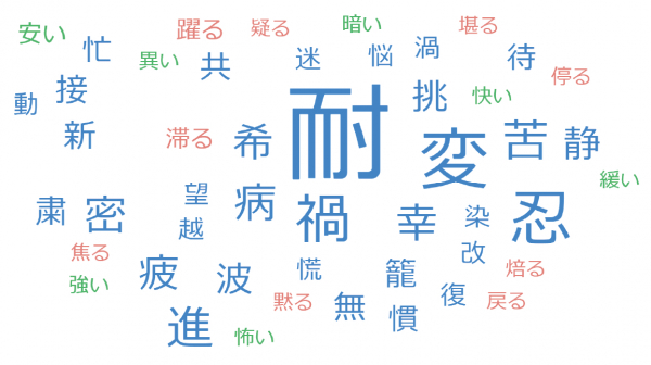「耐」が選ばれた理由は、「コロナ自粛で耐えに耐えたから」「アルバイト、友人との交流、旅行、外食、飲み会、対面での授業などさまざまな場面で耐えることが多かったと感じるため」といったものがあげられ、コロナ禍での生活において、耐えることが多かった1年であるとわかる。