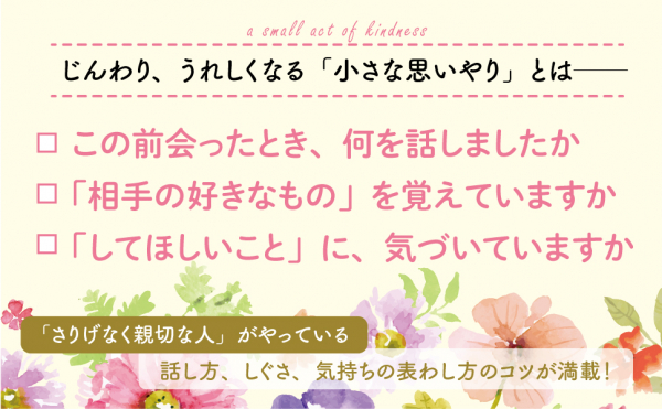 株式会社三笠書房(東京都千代田区/代表取締役:押鐘太陽 http://www.mikasashobo.co.jp )は、11月29日に『相手のことを思いやるちょっとした心くばり 話し方、しぐさ、気持ちの表わし方……48のコツ』著者岩下宣子が、キンドル電子書籍ストアにて配信開始いたしました。