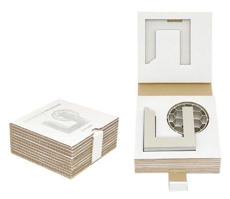 本体のアルミ合金と段ボール製の専用パッケージはリサイクル可能素材です。ソリッドハニカムテープカッターはシンプルな素材と、最先端の技術を活かしたデザイン、高級感のある作りによってギフトに最適です。2021年12月よりオンラインで販売を開始します。