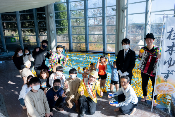 2100個の柚子が入った柚子風呂が、日本一の柚子風呂として登録されました。