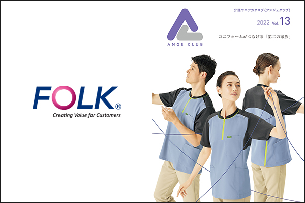 フォークのブランド『アンジェクラブ』は看護・介護の現場に向き合うプロたちの想いと絆をカタチにする介護ウエアブランドです。
