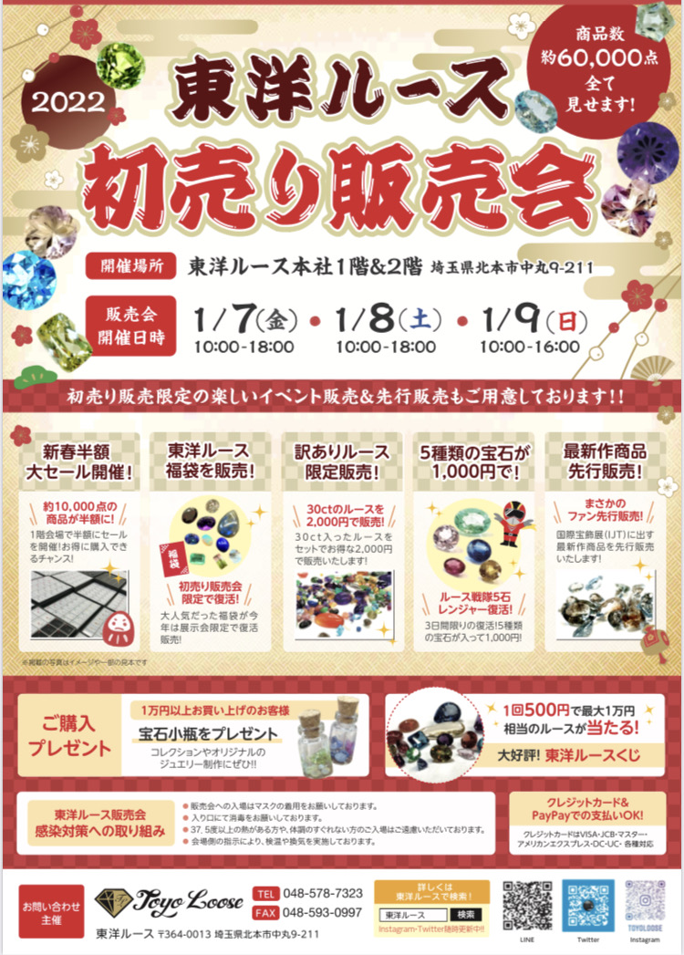 2022年1月7日(金)~9日(日)東洋ルース初売り販売会in埼玉北本本社