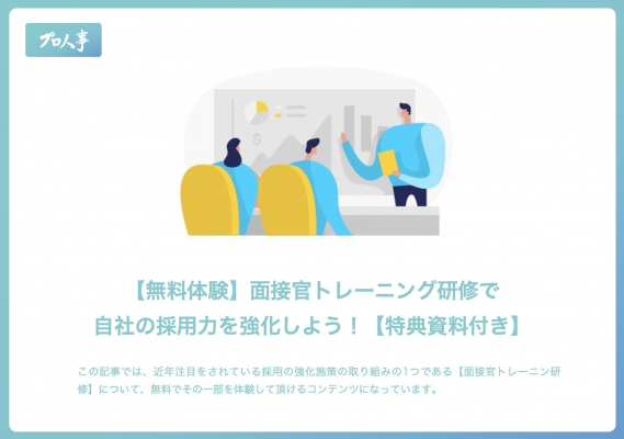 プレゼントさせて頂く内容は【無料体験】面接官トレーニング研修で自社の採用力を強化しよう!【特典資料付き】というものです!