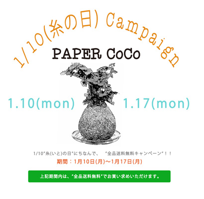 和装、洋装、意匠撚糸、寝装、宝飾品といった事業を中心に事業展開をする創業160年の堀田丸正株式会社(本社:東京都中央区、代表取締役社長:平岩誠)は、ボタニカラフルな生活をお届けする「PAPER CoCo(ペーパーココ)」の公式オンラインストアにて1月10日(月)「糸の日」にあわせ8日間の「1/10(糸の日)キャンペーン」を開催致します。また同日、ペーパーココヤーン(糸単品)から新色「モカ」と、新たに2種類の植物、「フィカス・プミラ」と「ガジュマル」を発売致します。