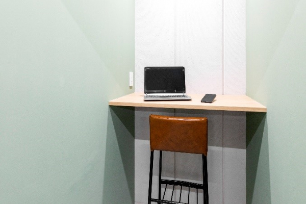 コンセプトは「子供心を思い出させる、ワクワクするシェアオフィス」。松屋町らしい、古き良き雰囲気をイメージして、アンティーク調の内装に仕上げています。コンパクトな広さでありながらも、複数のタイプの席を設け、”今日はどの席にしようかな?“と選んでいただけるようにしました。半個室型の籠れる秘密基地のような席もあります。