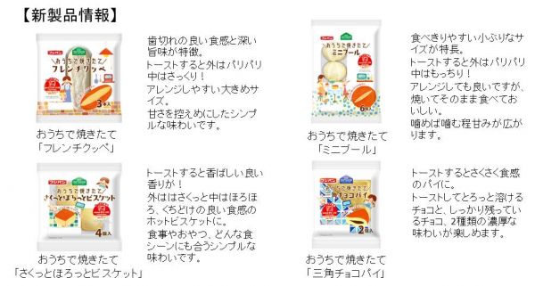さらに新たな4種類のバラエティー溢れる新商品をおうちで焼きたてでお楽しみ下さい。