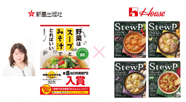 第8回「料理レシピ本大賞 in Japan」の料理部門入賞作、『野菜はスープとみそ汁でとればいい』(新星出版社)の著者 倉橋利江さんが、ハウス食品が発売する『StewP〔シチュープ〕』のアレンジレシピを考案しました。