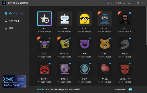 MagicMicはリアルタイムで声を変換できるソフトです。内蔵の音声フィルターと効果音を使って簡単に直ちにボイスチェンジできるが、ゲームやチャット、ライブ配信はより面白くなれます。また、真実の声を隠すのは可能なので、プライバシーの保護や非現実的なキャラクターの作成にもかなり役立ちます。
