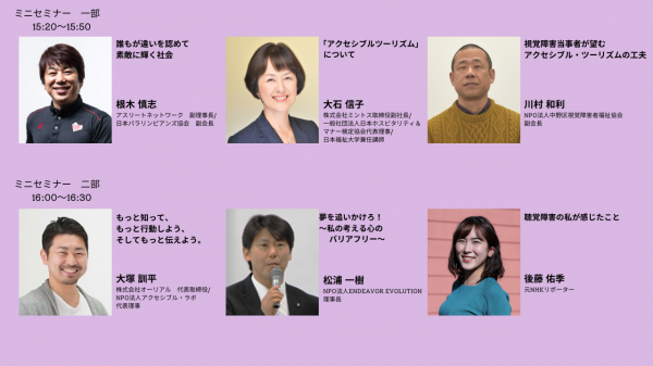 アクセシブル・ツーリズムを様々な観点から紐解いたミニセミナーを公開致します。本セミナーは二部制となっております。