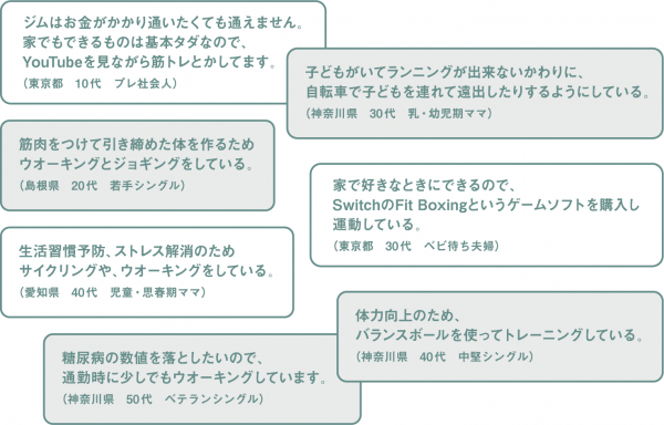 「基礎代謝量の維持・向上」「体力の向上」が過半数の回答を集めた。コロナ禍で健康に強く意識が向いたこともあり、体の基礎力を引き上げたいと考える女性が多いことがわかる。また、「気晴らし・ストレス解消」も約4 割という結果に。コロナの影響もあり、ストレスを感じることが多かった2021年。ストレス解消のために運動するようになった人も増えたと推測される。