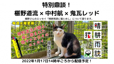 小説投稿サイト「ステキブンゲイ」にてエッセイ『晴耕雨読に猫とめし』を毎週水曜日に更新している、小説家の椹野道流さんをお迎えして、小説家でステキコンテンツ代表の中村航、そして本エッセイ連載の仕掛け人である、上野明正堂のカリスマ書店員・鬼瓦レッドさんが鼎談を行います。