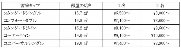 ■ 宿泊料金素泊まり(1泊1室あたり料金 / 税込)