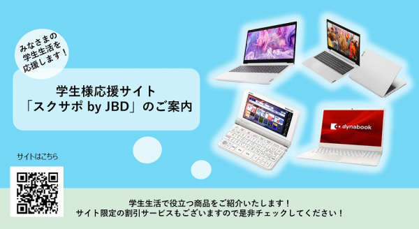 『スクサポ by JBD』では、学生様のお役に立てるようノートPCにマウス・PCケースなどの周辺機器を付帯した特別応援セットをご提供致します。