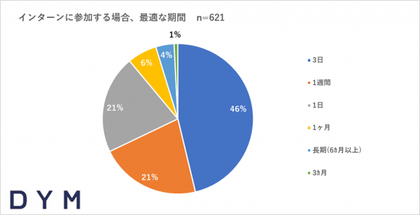 ■「インターンの最適な期間」は3日が46%でトップ、1日も21%