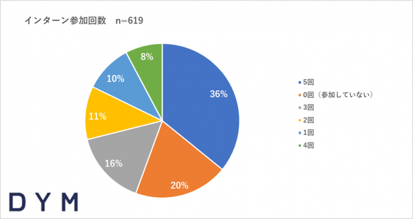 参加回数については「5回」が36%でトップ、逆に「0回(参加していない)」が20%で2位となるなど「インターンシップへの参加意欲が学生によって差がでる結果となりました。