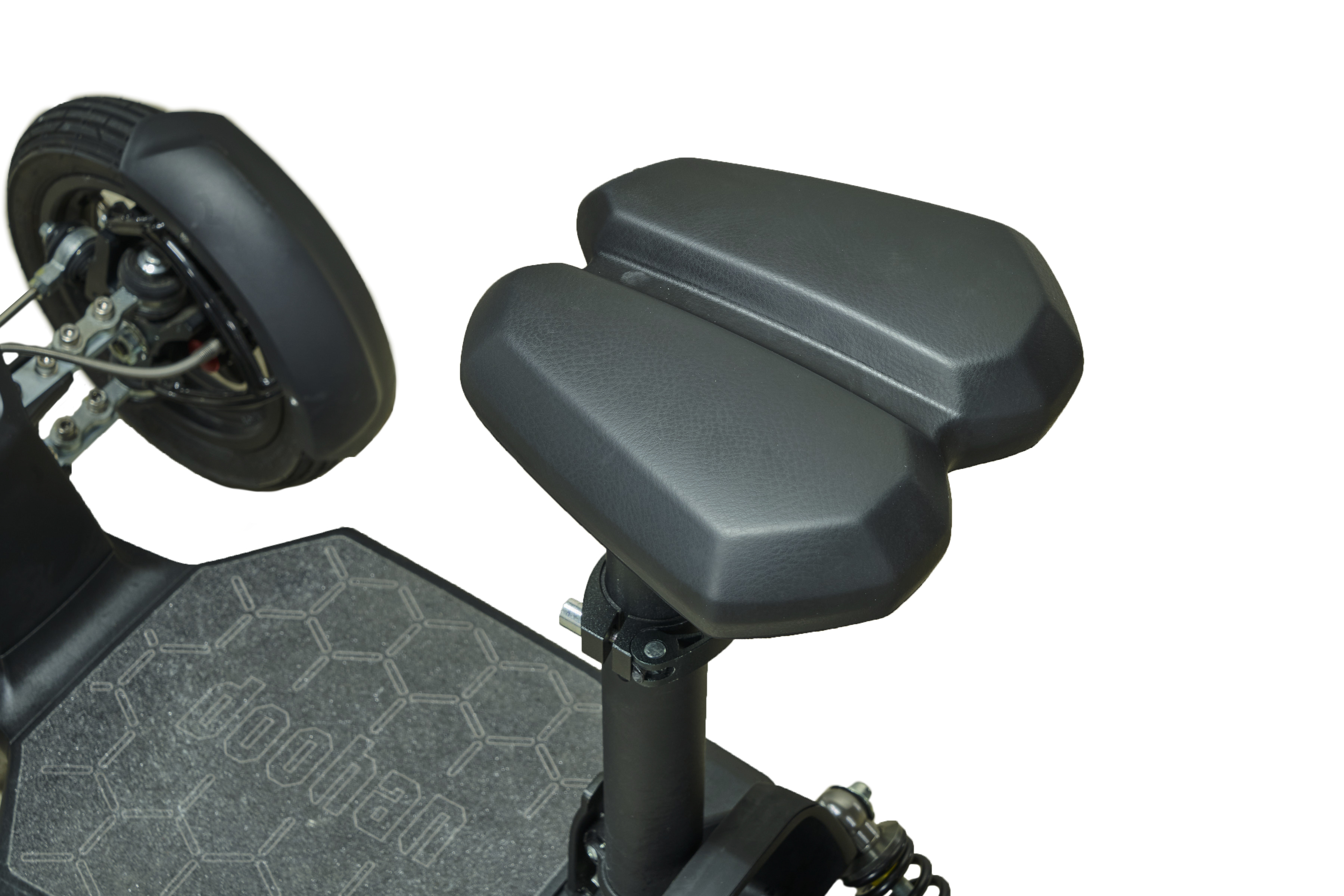 2つの前輪をもつ3輪タイプで、バランスをとりにくく倒れやすいキックボード、2輪車、スクーターの課題を解消した乗り心地を実現しています。
