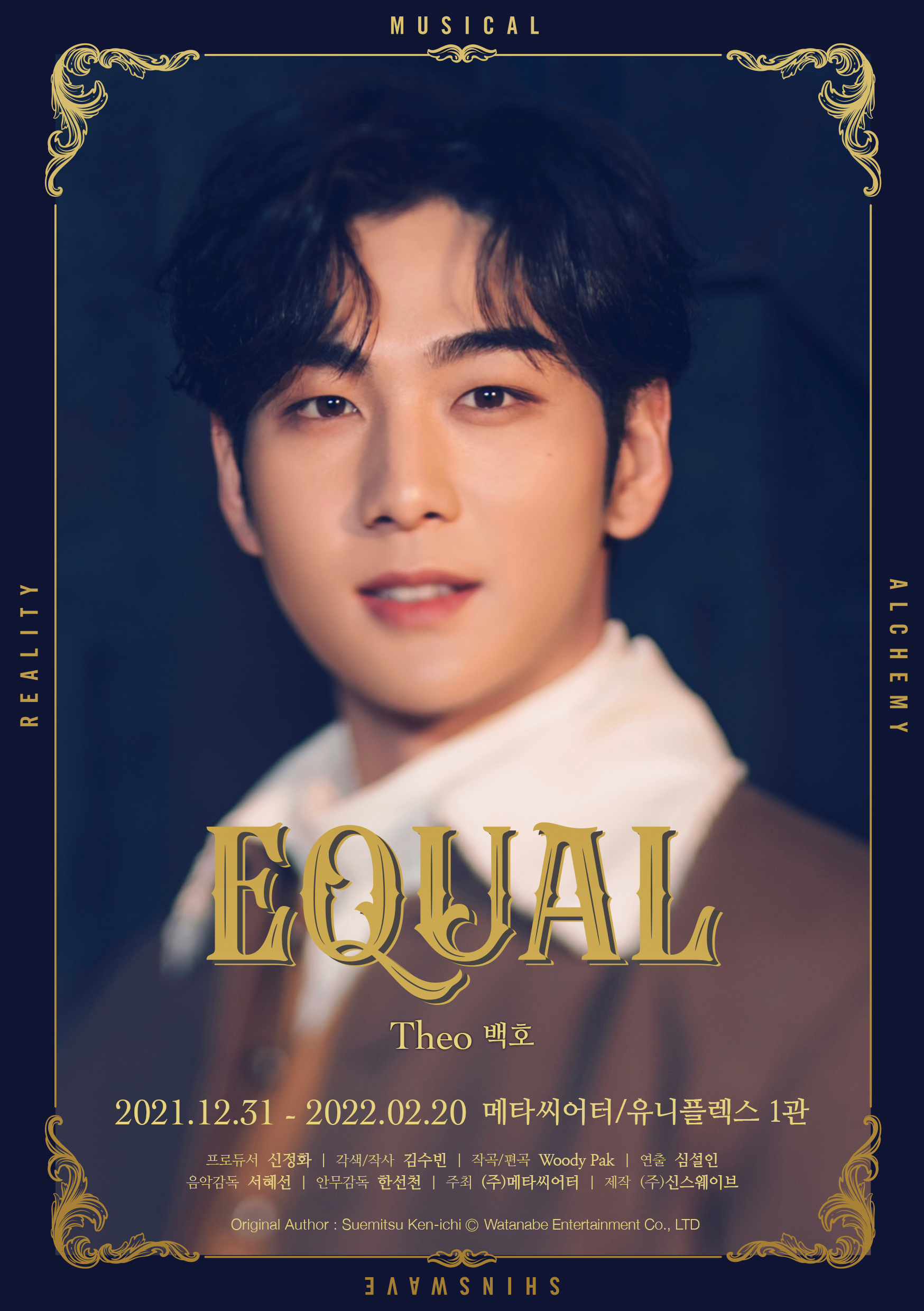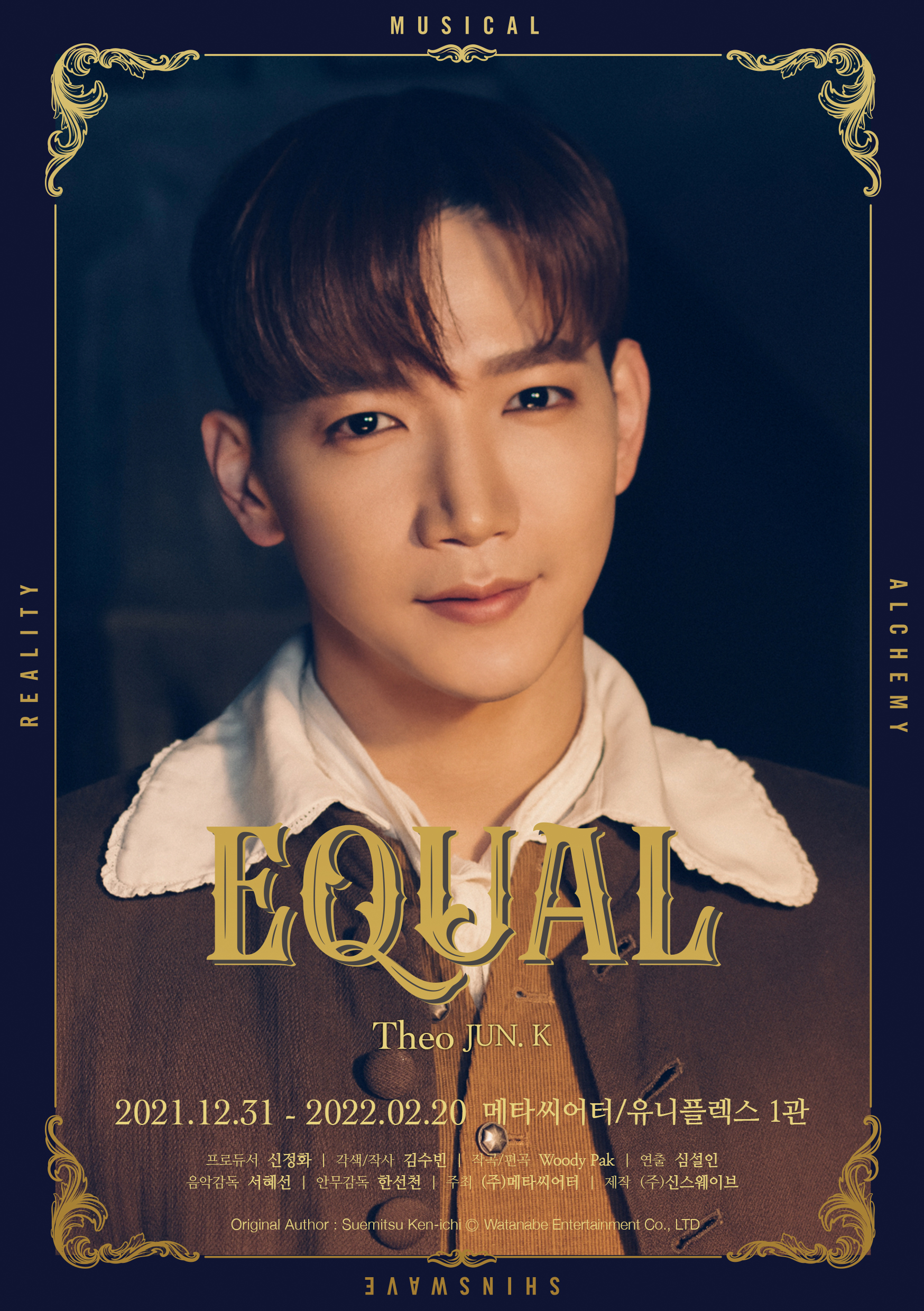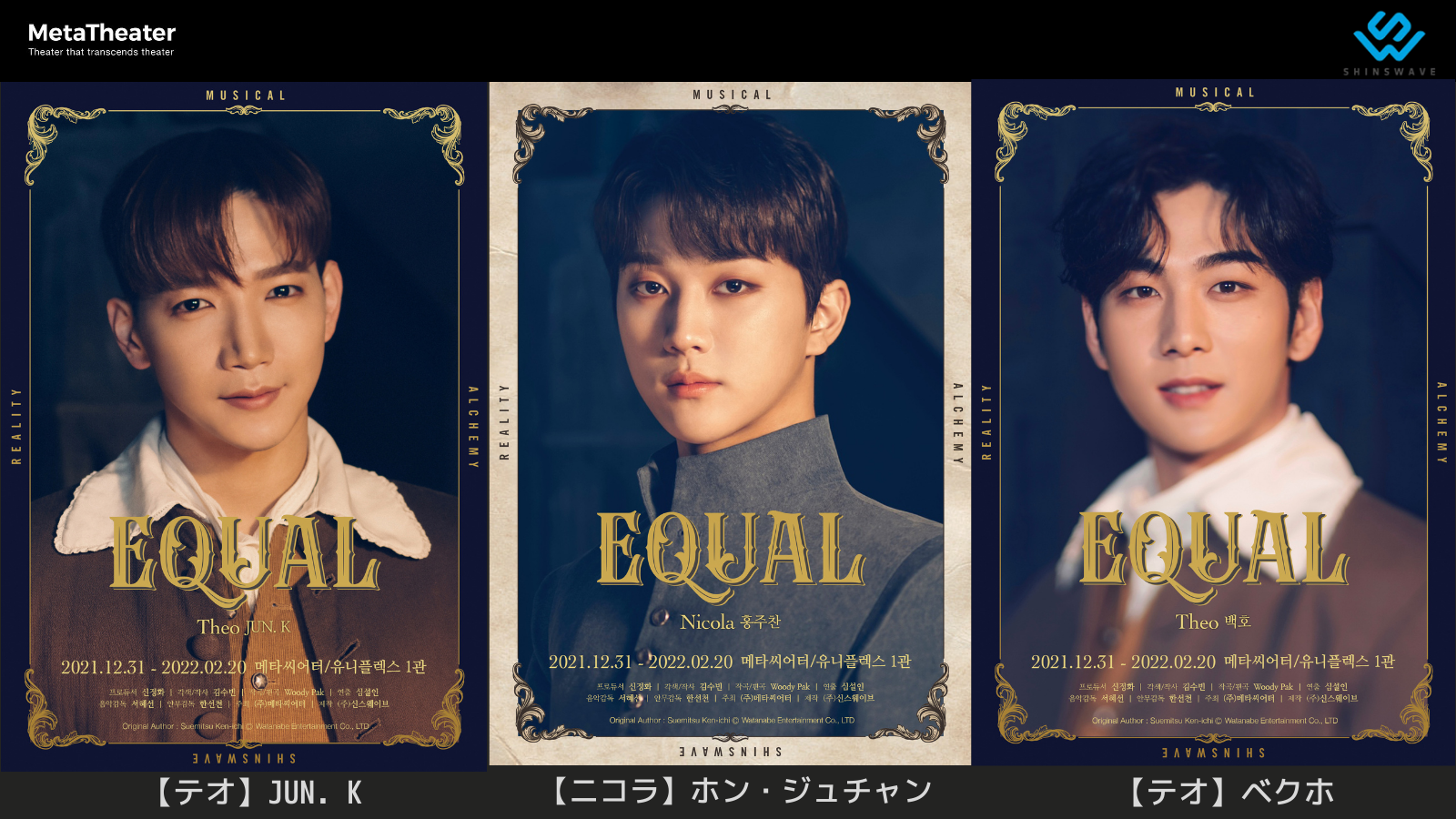 株式会社SINsWAVE(韓国ソウル鐘路区 代表:シン・ジョンファ)は自社が制作(主催METATHEATER)、1月21日(金)よりグローバルK-POPスター2PM JUN. K(ジュンケイ)|NU'EST ベクホ|GoldenChild ホン・ジュチャン主演の創作ミュージカル『Equal』(読み:イコール)のライブストリーミング配信に先駆けてメインポスターを1月20日(木)公開した。