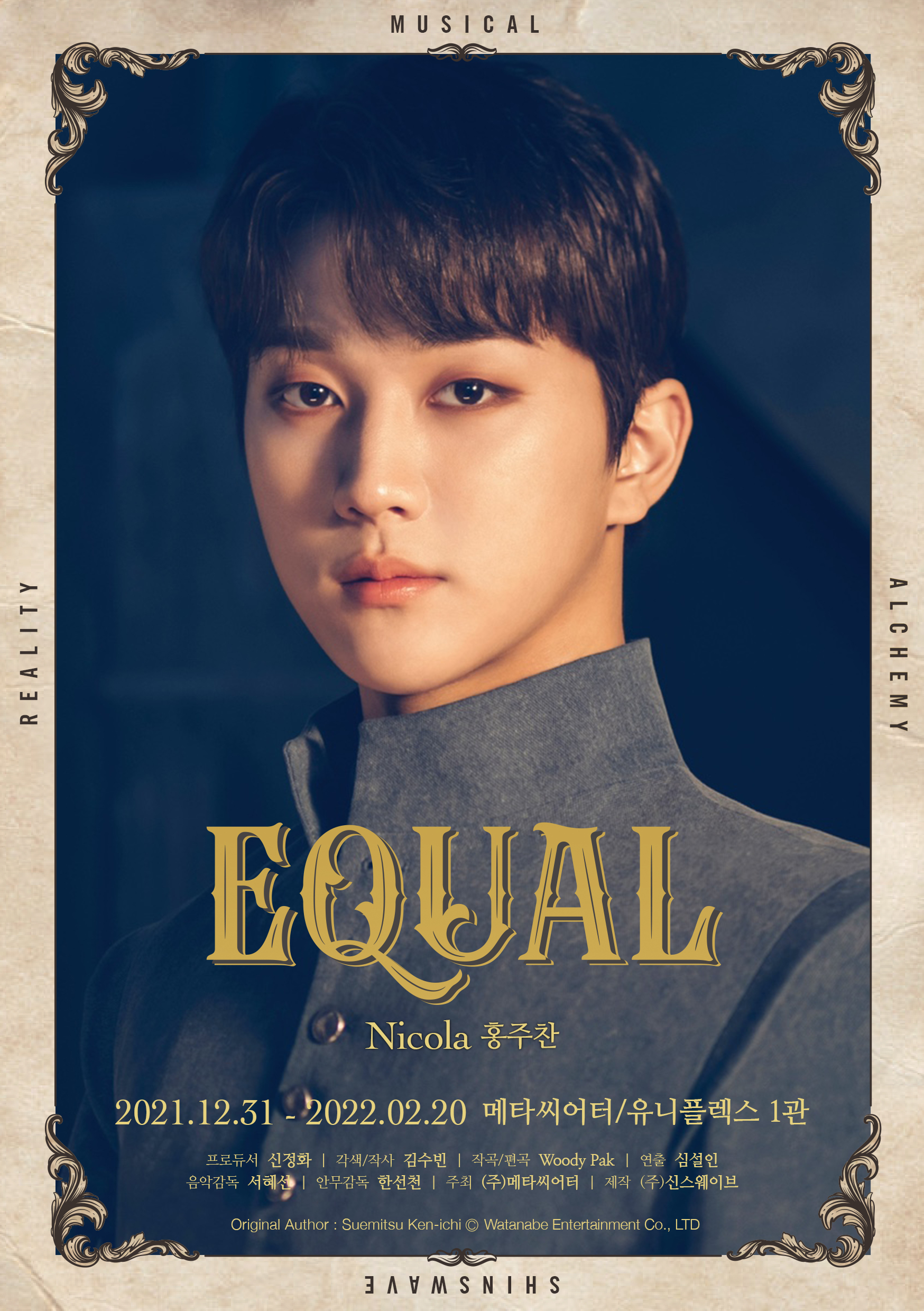 2020年韓国で初演されたミュージカル『Equal』は、TRUMPシリーズや舞台『刀剣乱舞』(脚本・演出)などで知られる劇作家・演出家の末満健一の同名戯曲で、魔女と異端者狩りが横行していた17世紀ヨーロッパを背景に幼馴染みである「ニコラ」と「テオ」二人の切迫した欲望と歪んだ運命を描いた二人芝居である。