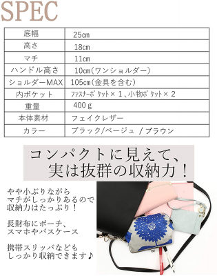 長財布 スマホ 化粧ポーチ ペットボトルといった必須アイテムを収納可能!