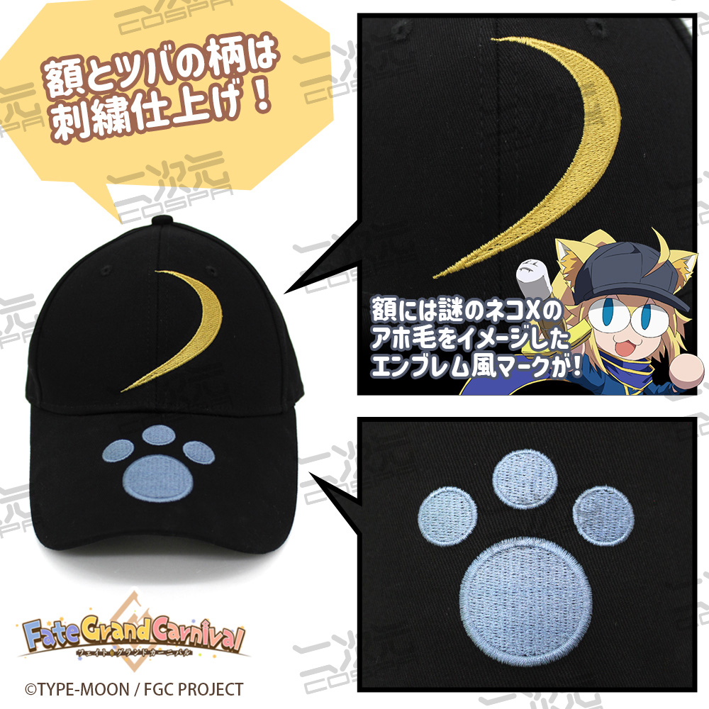 公式キャラクターコスチュームやアパレル、グッズの製作を行う株式会社コスパは、大人気スマートフォン向けRPG『Fate/Grand Order』を原作とするショートアニメ『Fate/Grand Carnival』より新作グッズ「謎のネコX アホ毛付き 刺繍キャップ」を発表した。