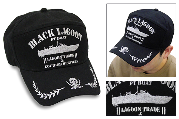 主人公たちが生業とする運び屋稼業には欠かせないだろう腕時計は、オールブラックで仕上げ、ミリタリー調の“ラグーン商会”仕様。同じく主人公たちの駆る魚雷艇“ラグーン号”をアポロキャップへ刺繍でデザインしました。