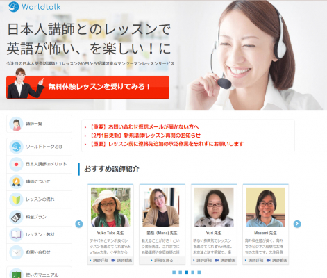 ワールドトークは「日本語」で相談、質問が出来る日本人講師がレッスンを行いますので、理解が難しい場所は日本語でフォローをしながら学習を進めることが可能です。不安や悩みをその場で一緒に解決しながら、レッスンを受講いただけます。