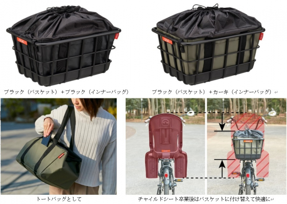 自転車用品の開発製造販売を行うオージーケー技研株式会社(本社大阪府東大阪市、代表取締役:木村 泰治)は、レジカゴバッグをセットにした自転車用後ろカゴ「インナーバッグ付リヤバスケット」を、2月23日よりオンラインストア(https://ogk-giken.shop-pro.jp)で発売、自転車販売店等で順次販売を開始します。レジカゴからそのまま自転車カゴに移して買い物時の手間を省き、走行中の荷物の飛び出しを防ぐカゴカバーとしても役立ちます。トートバッグとしても使用でき、自転車での買い物やお出かけ時に多用途に活躍します。