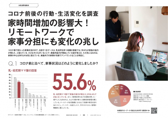 2022年3月は、母親以外の家事参加の増加、家事分担の普及の中で新たに生まれたニーズを探っていきます。家事時間を減らすための効率化、時短化を追求した商品、そして空いた時間にまったりした気分になる商品、ワクワクする気分になる商品を具体的に紹介していきます。