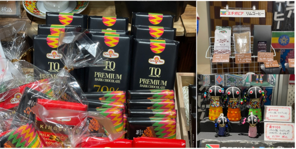 オスマン・サンコン (駐日ギニア共和国大使館顧問・タレント)のアフリカ支援活動を応援する株式会社スペース(東京都渋谷区、代表取締役 春山祥一)は、アフリカ各国の魅力的な高級食品・各種グッズを取扱うアルケブラン・ジャパン株式会社(東京都中央区、代表取締役 小林真己)が、東京メトロ銀座駅構内(数寄屋橋交差点改札出てすぐ)に出店している「アフリカ市場AFRICA ICHIBA」に参画しています。この店舗では2月から、ガーナ直輸入の高級チョコレート3種、エチオピアの本格コーヒー、南アフリカ・ンデベレ族の色彩豊かな人形・アクセサリーなどを揃え、これからアフリカ各国から直輸入のチョコレートと各種食品・グッズを次々にご紹介・販売します。