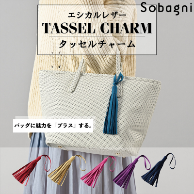 Sobagniで仕立てたフリンジチャームは、繊細なタッチと耐久性を兼ね備えた素材で上品なルックスと手触りが魅力です。
