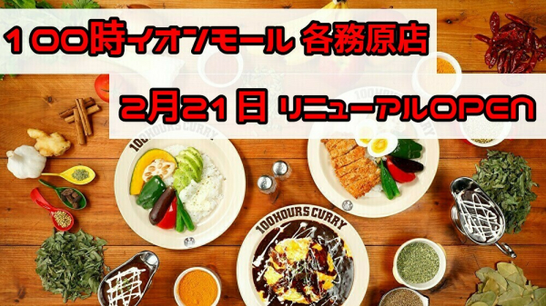 ~たくさんのお客様のご支援のおかげで、100時間カレー各務原店がリニューアルOPENいたします~